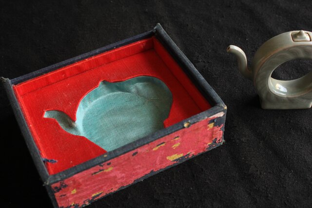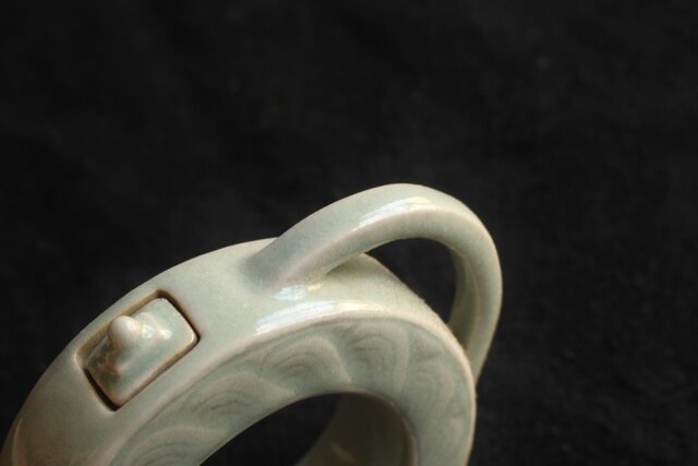 丁寧な成型による造り 共箱に入った青磁の作品です