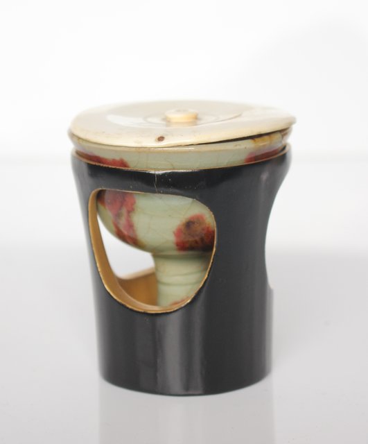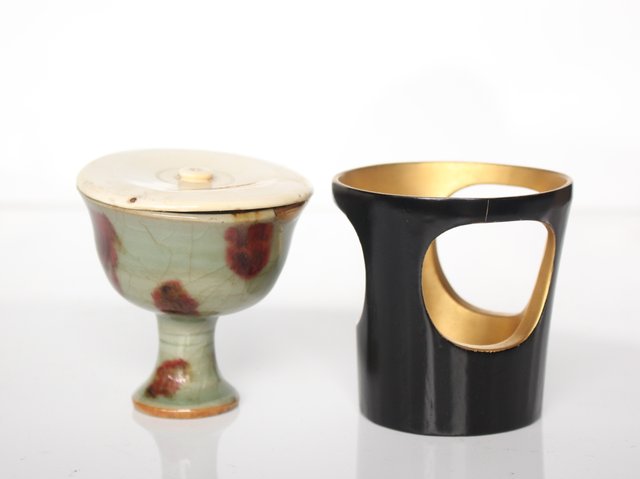 巣入りの高価な牙蓋を合わせ 馬上杯を支える様に