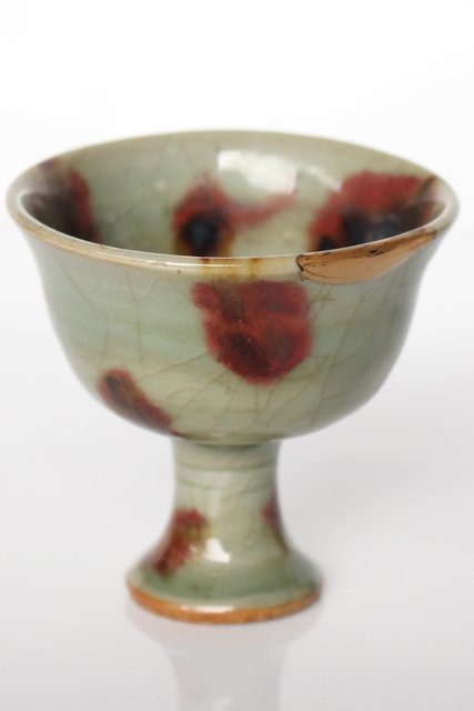 中国古陶磁 飛青磁の馬上杯