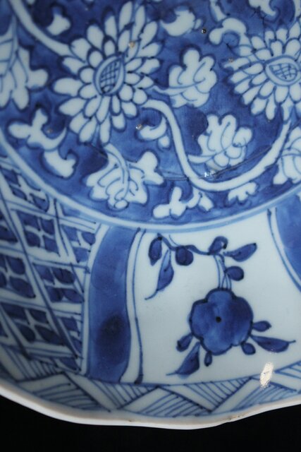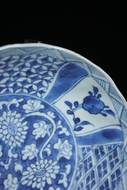 呉須の発色は良好で成形後に型を用いて縁に凹凸が施され