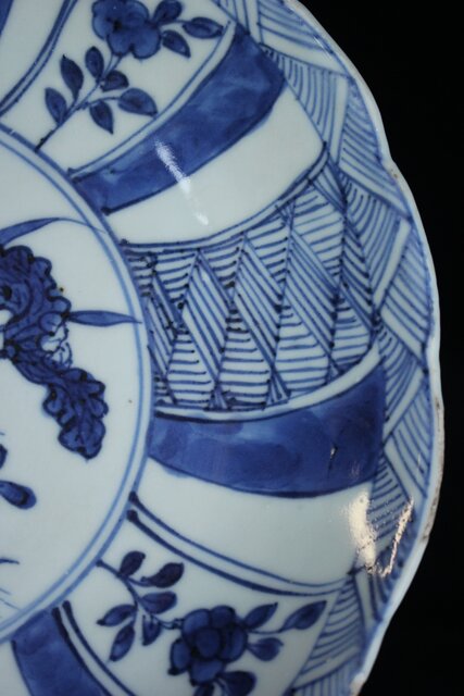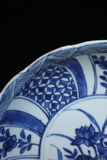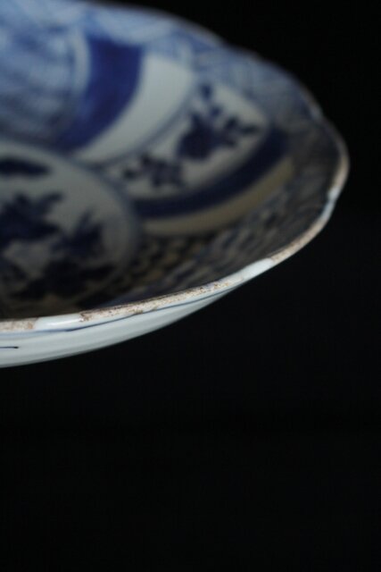 呉須の発色は良好で成形後に型を用いて縁に凹凸が施され