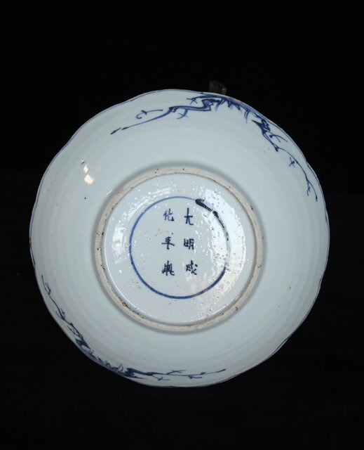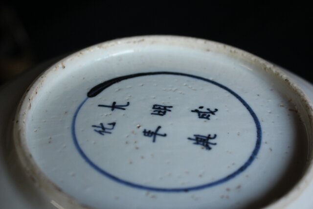 底面に「大明成化年製」の銘が入った 美しい古染の深皿です