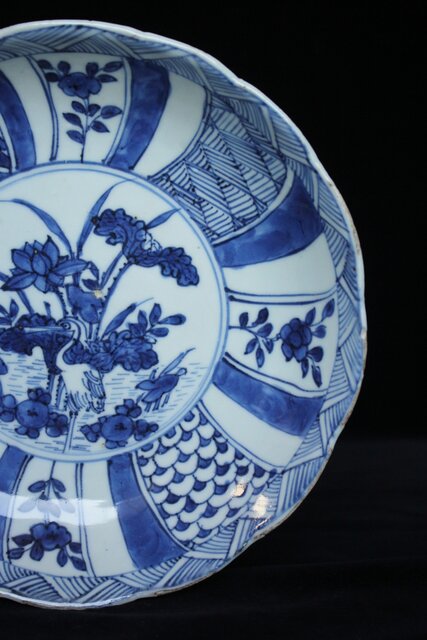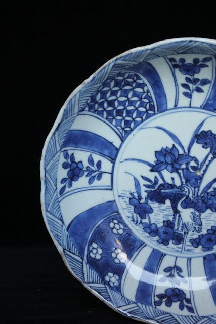 古染付 祥瑞手鷺文 深皿7寸 P064