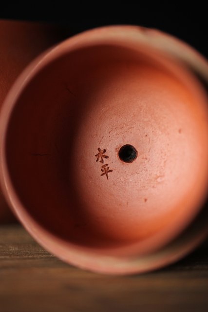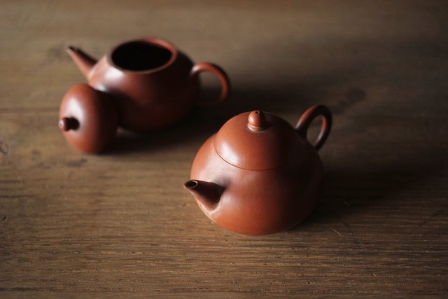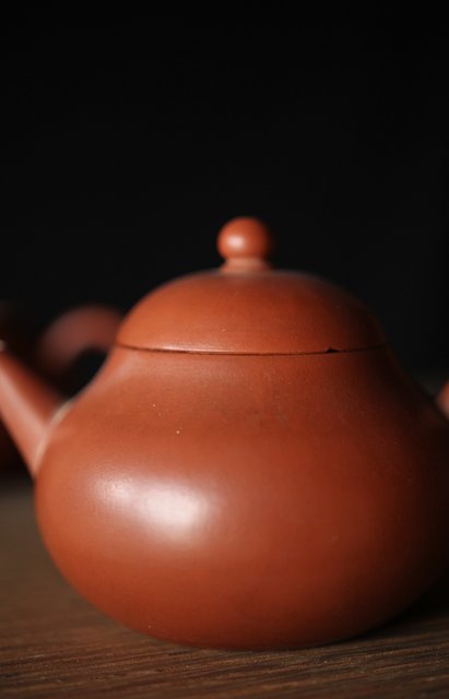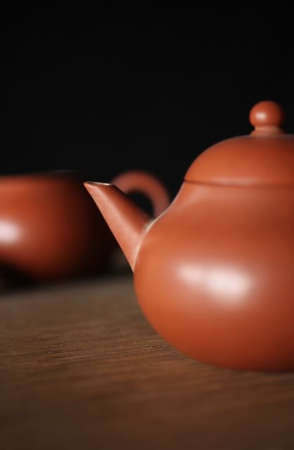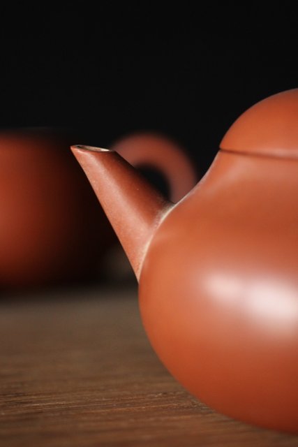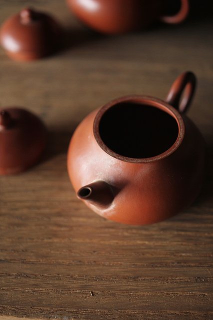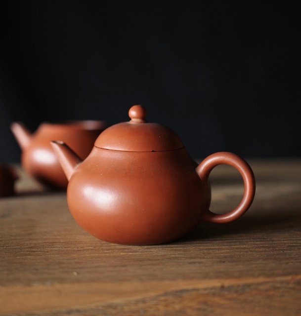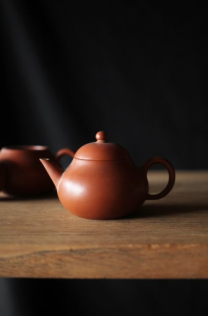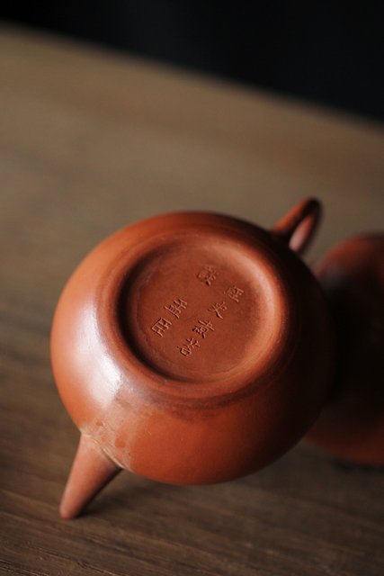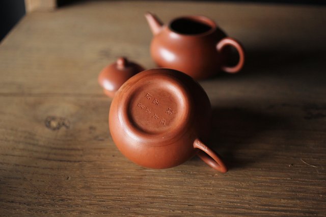 孟臣製 朱泥急須一雙 宜興紫砂壷 単孔 福記 80ml 梨式水平壺 P185