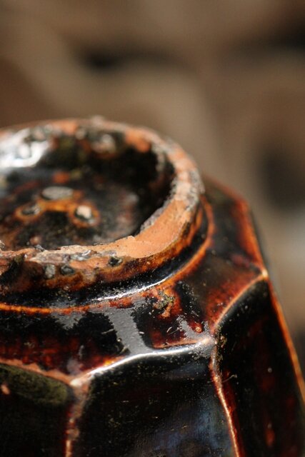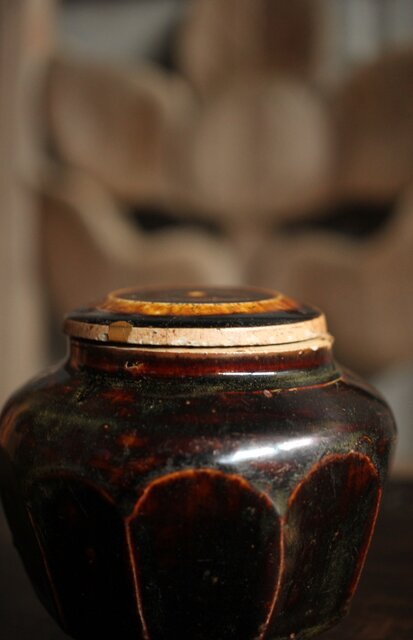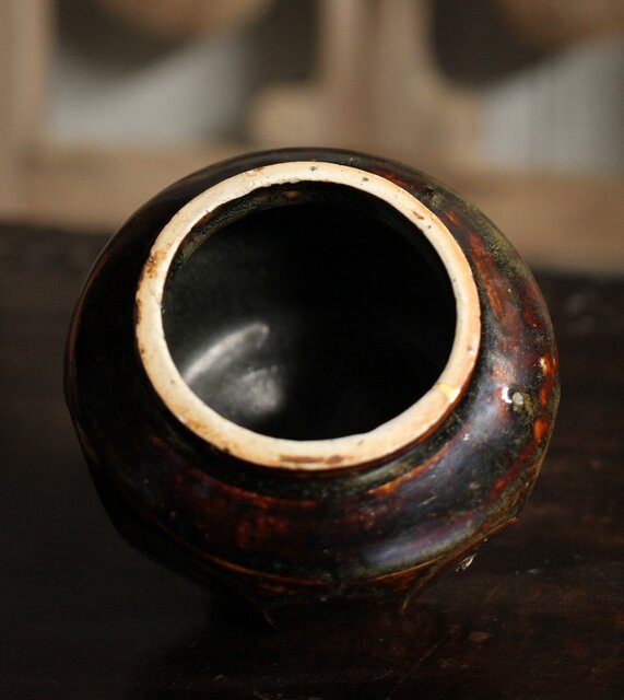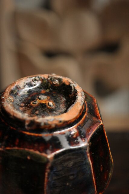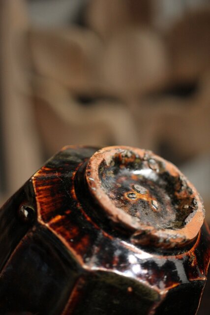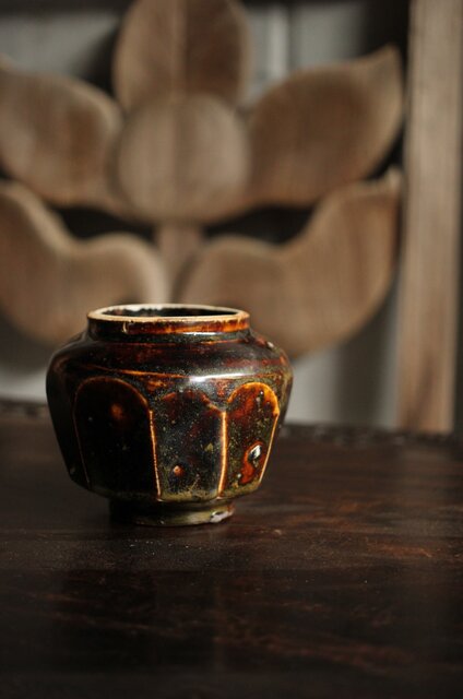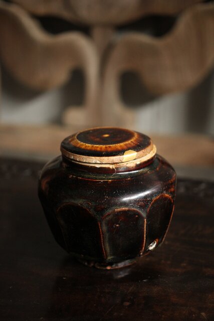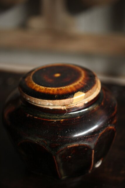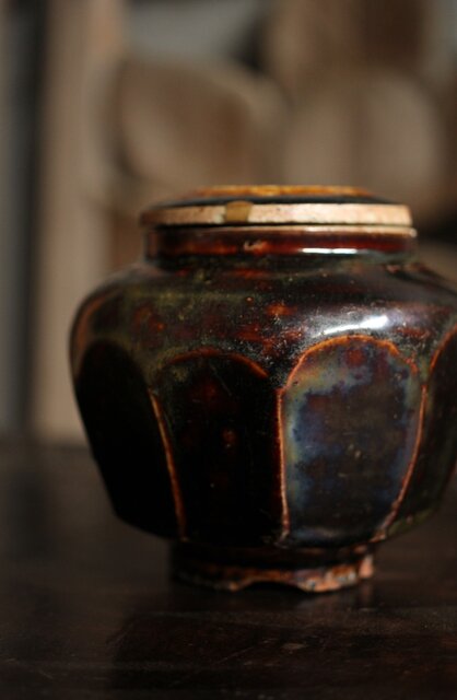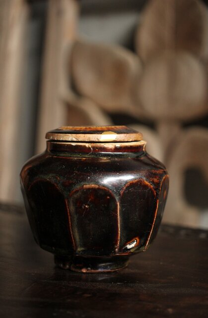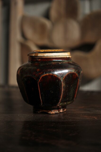 朝鮮李朝 飴釉蓋付面取壺 P523