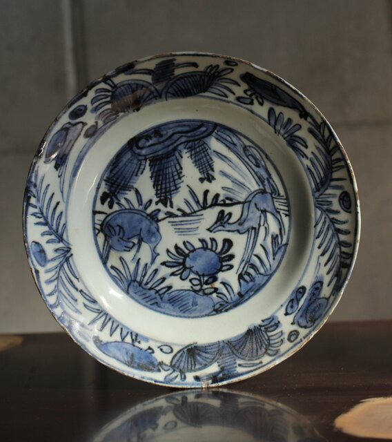 古染付 鹿図 染付七寸皿 P539