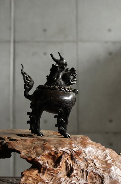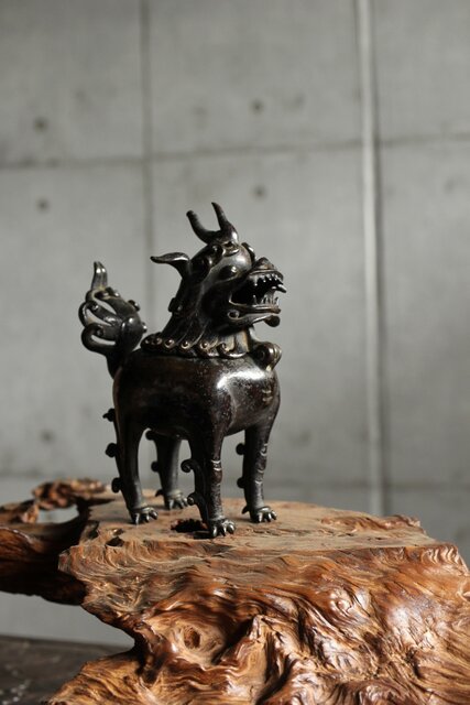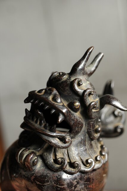 古銅の獅子香炉