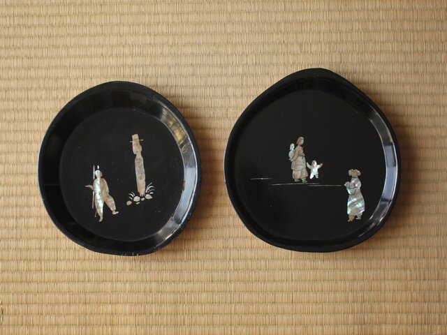朝鮮美術 李王家美術工場造 将軍標螺鈿 瓢盆 2個1組 U402
