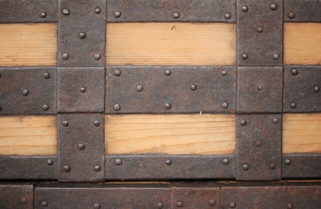 厚めの鉄板の帯 底面まで鉄帯が巻かれています