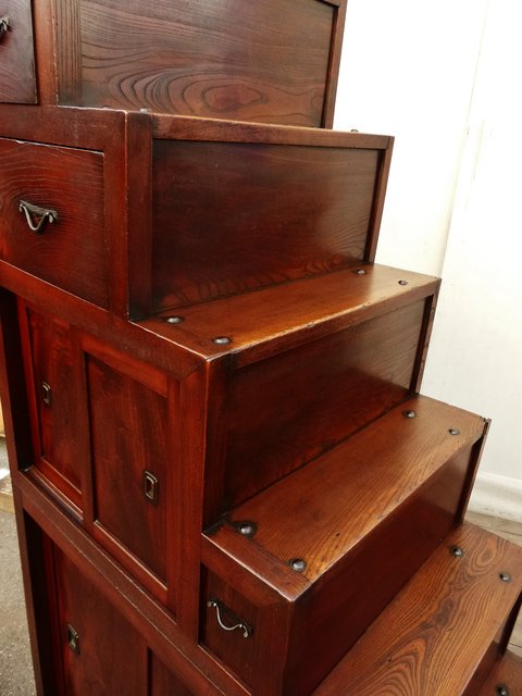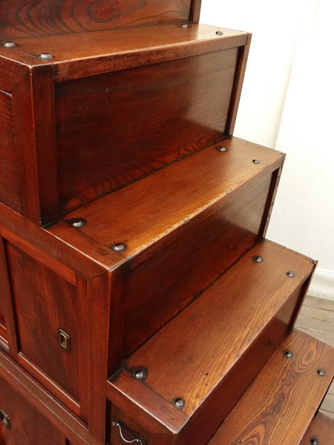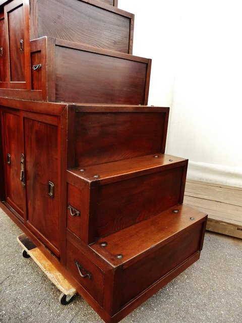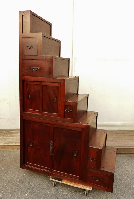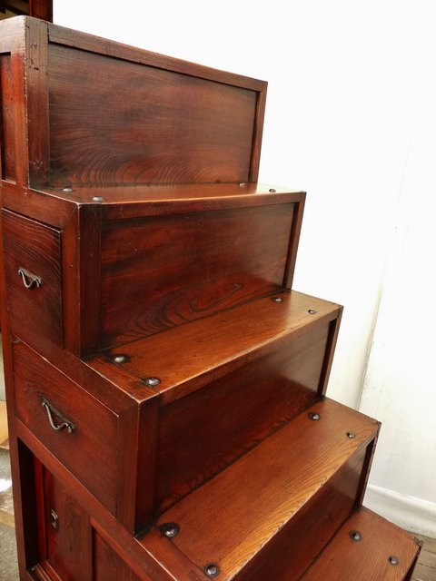極上漆飴色欅階段箪笥 M38