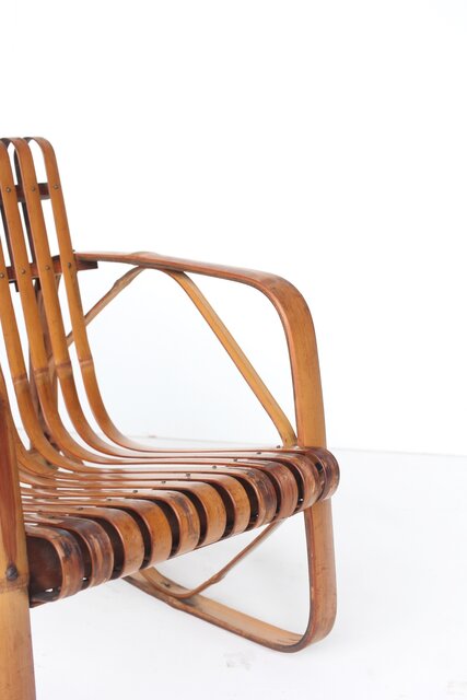 日本のデザイン史にも名作が残っていますが 1937年城所右文次氏がデザインしたバンブーチェア(竹製椅子/製作は竹興社) はとても有名 竹のしなりを利用し デザイン性と機能性を兼ね備えます