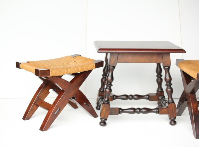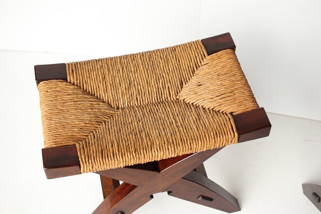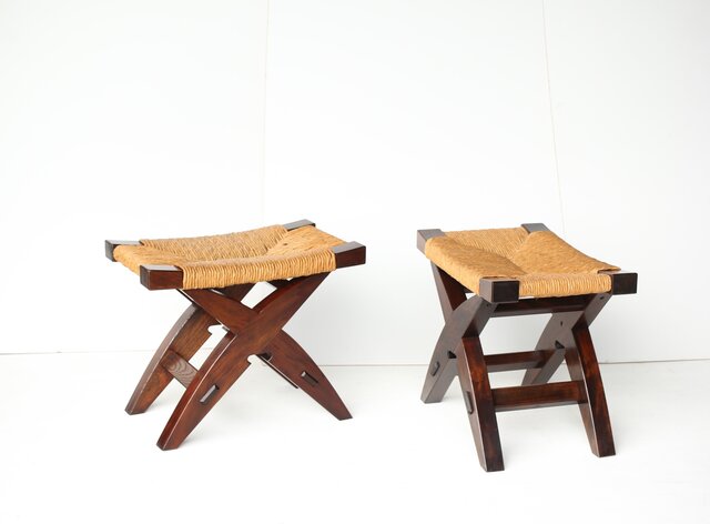 松本民芸家具 ラッシチェアー 222型鞍型スツール 2脚1組 T461 スツールテーブルと合わせても
