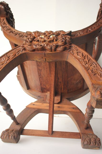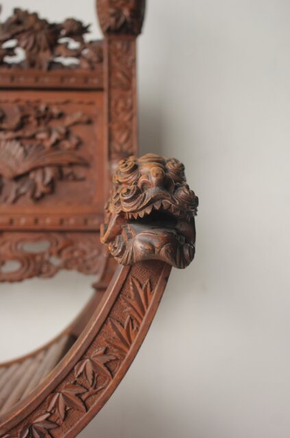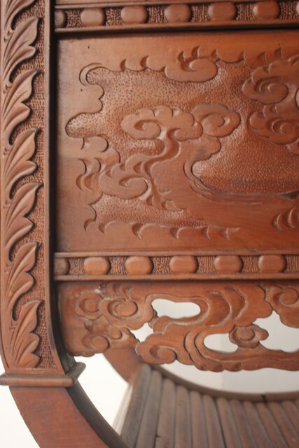 正確には 座面までが海外製(前面の装飾は日本彫) 上部は後から足したものだと思われます