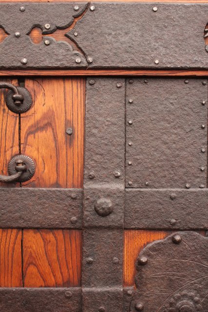 ほとんどが鉄金具で覆われた蔵戸