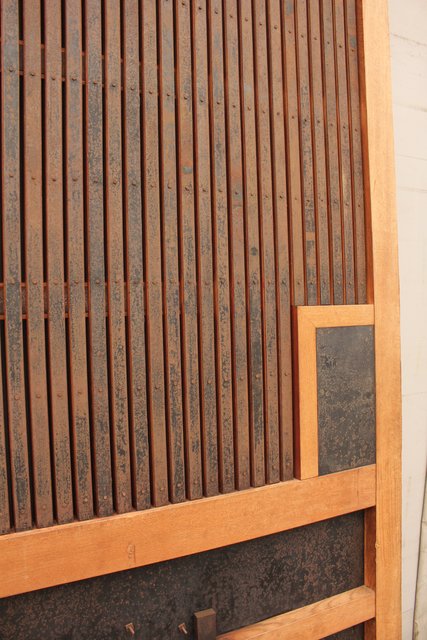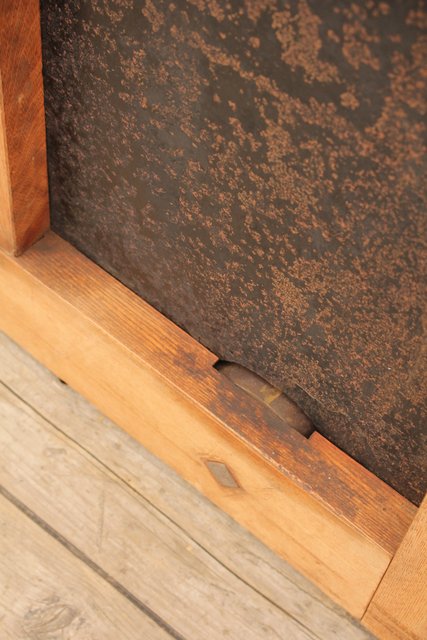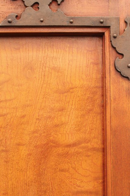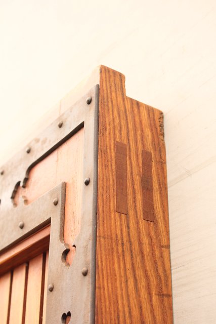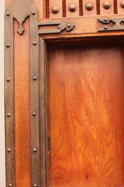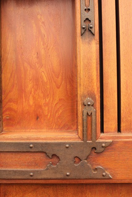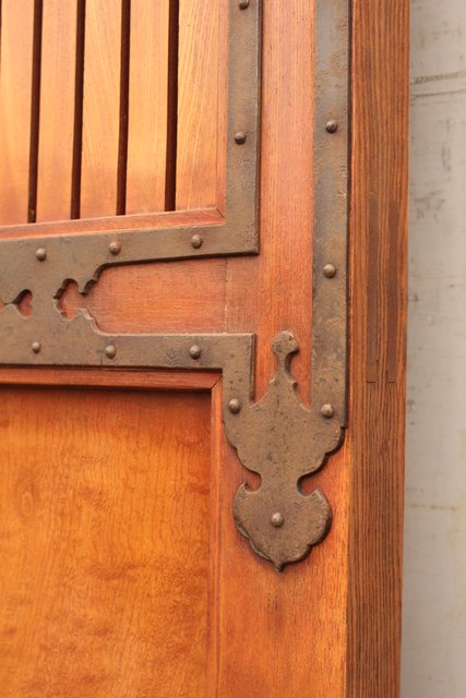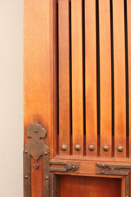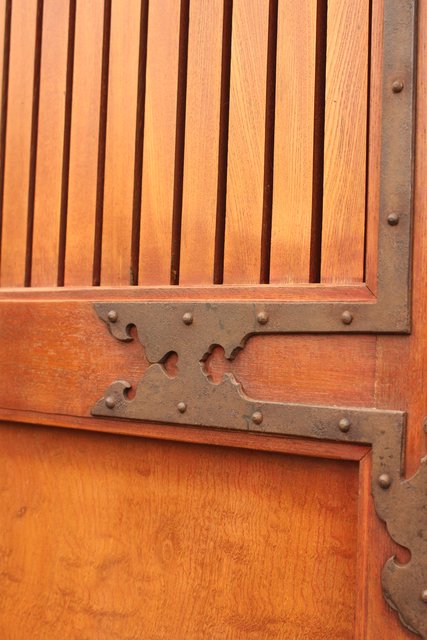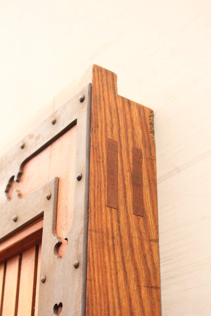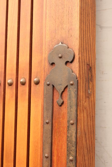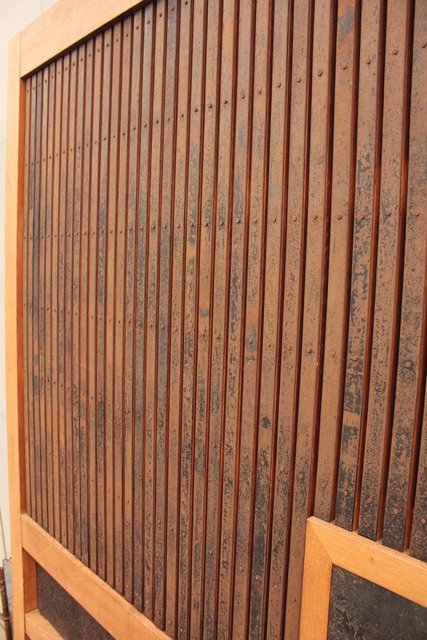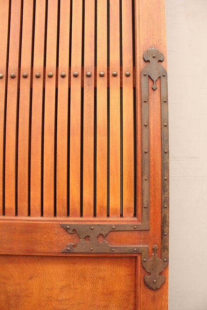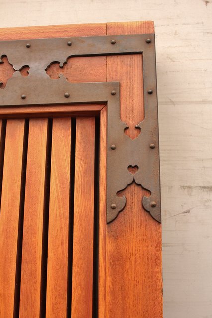 隅金具も個性的で 腰板には珍しく銅板も使用