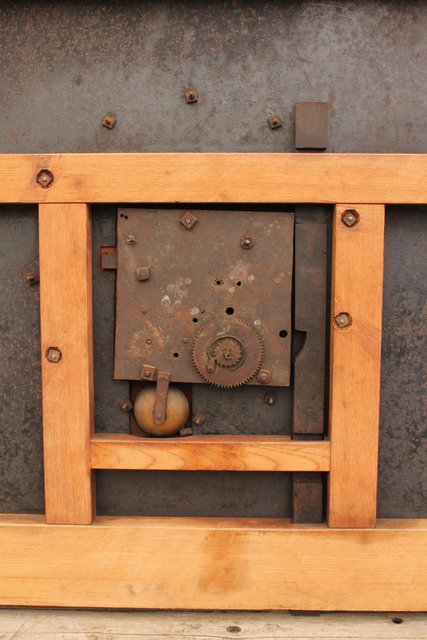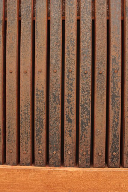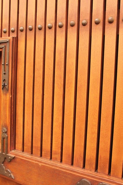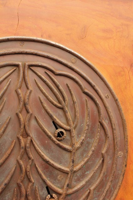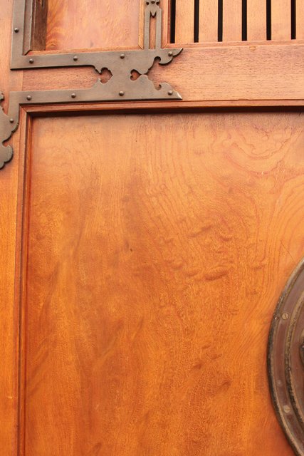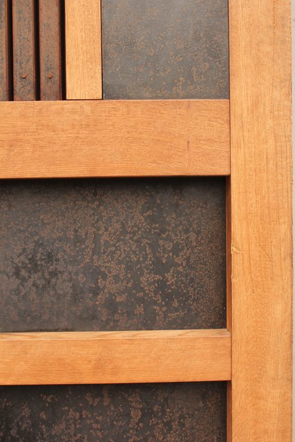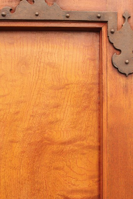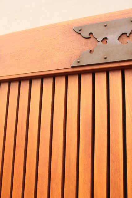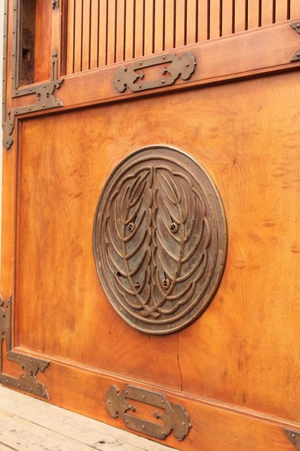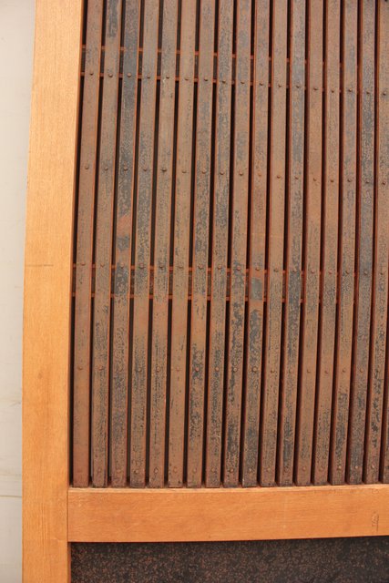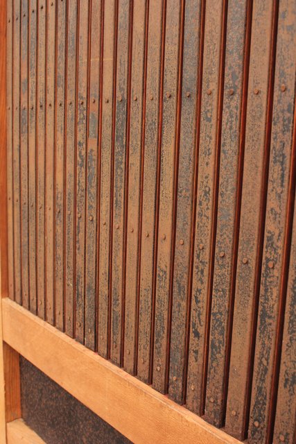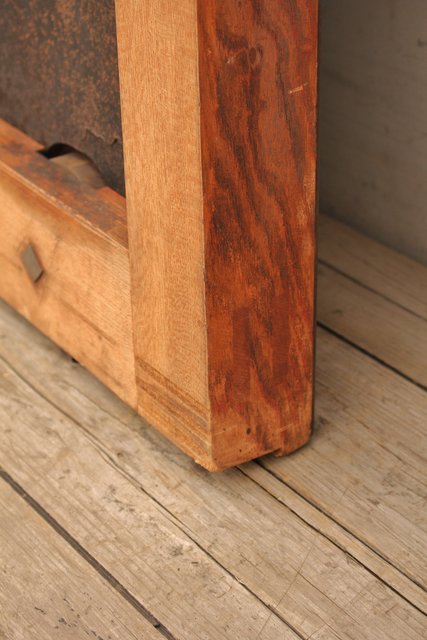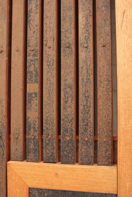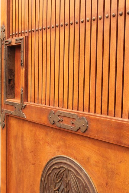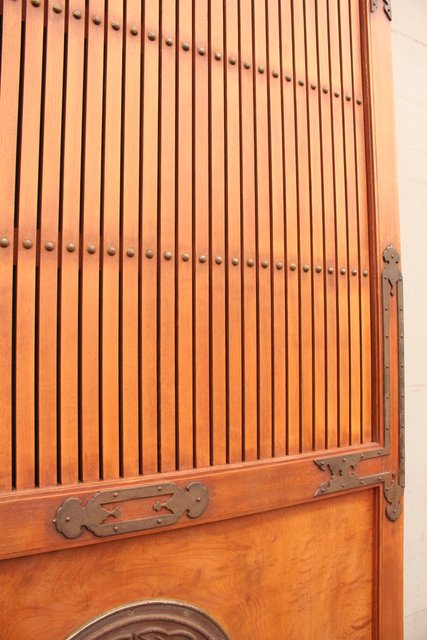 隅金具も個性的で 腰板には珍しく銅板も使用