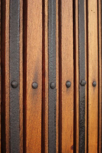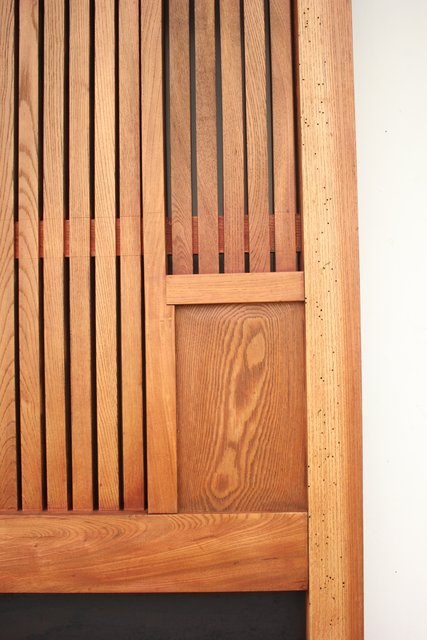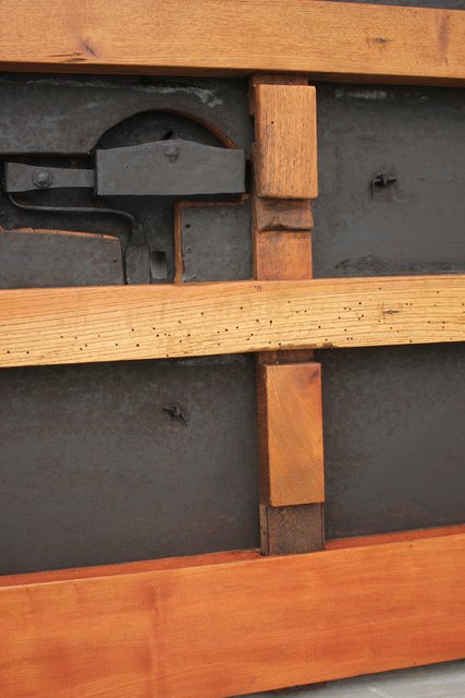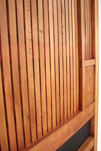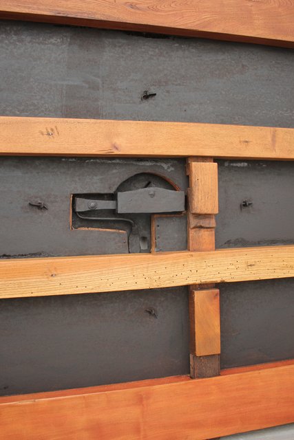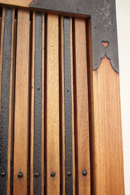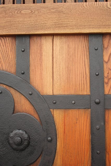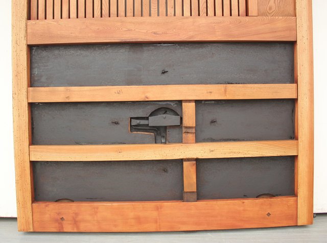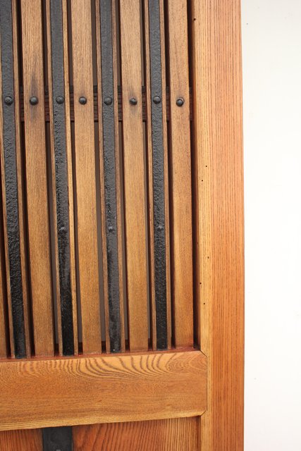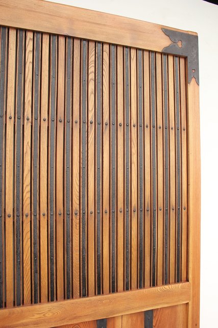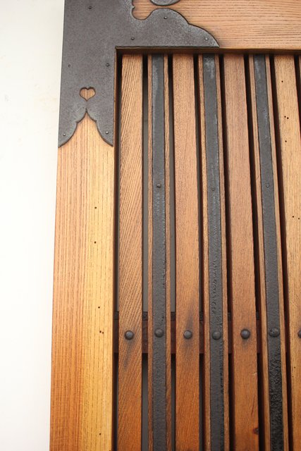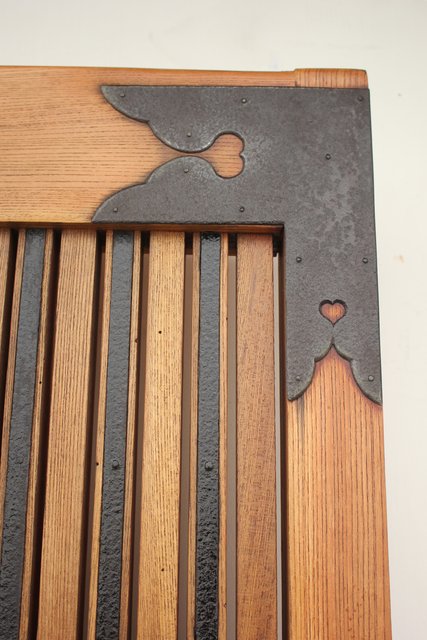 格子にも鉄格子を嵌め込み 背面からは鉄金具で腰板を守ります