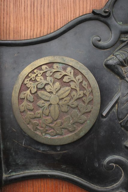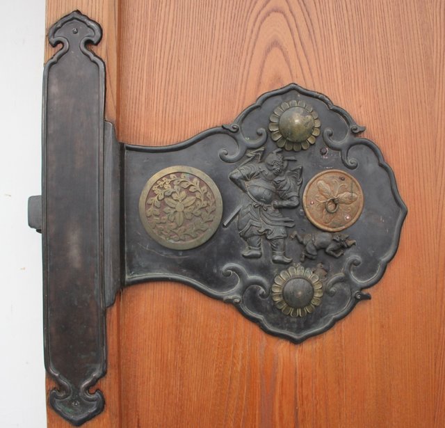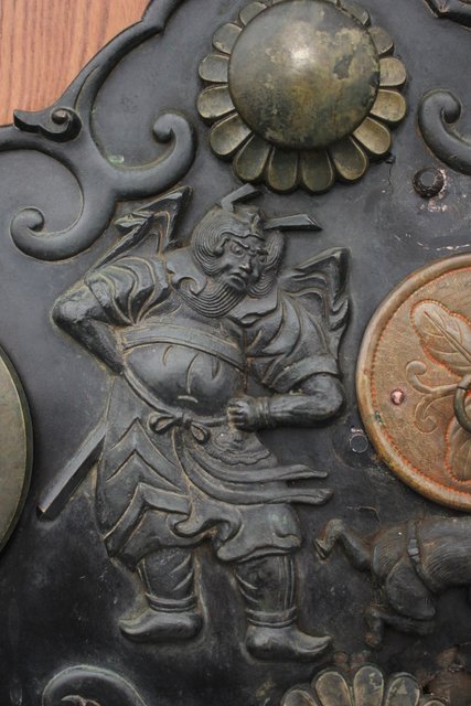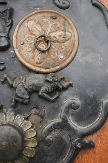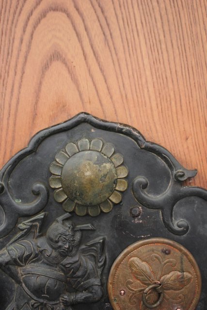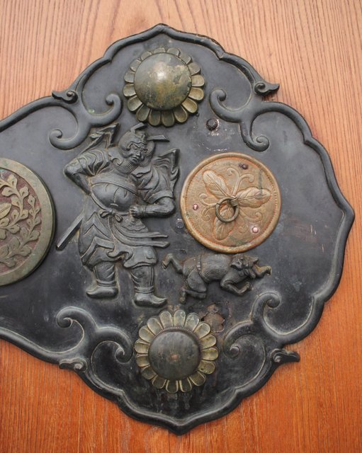 真鍮製の金具には鍾馗をデザインし魔除けのような意味を持ちます