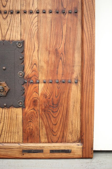 欅の杢目がしっかりと浮き出た美杢の蔵戸