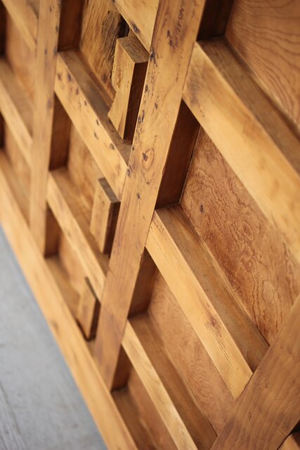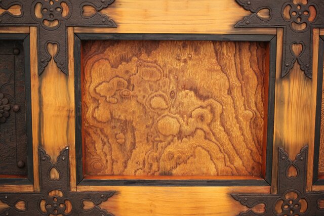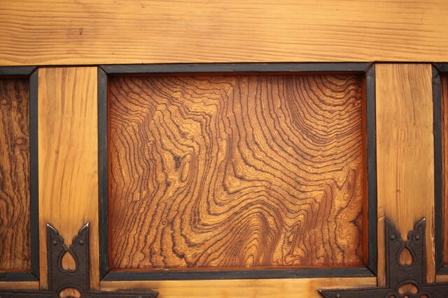 各升には玉杢や板目など わざといろいろな材を組み合わせ