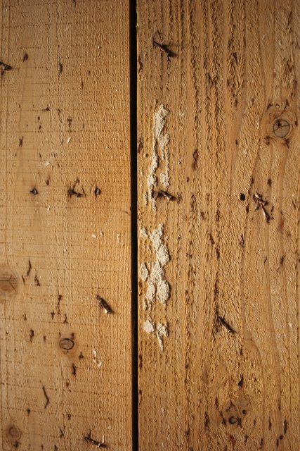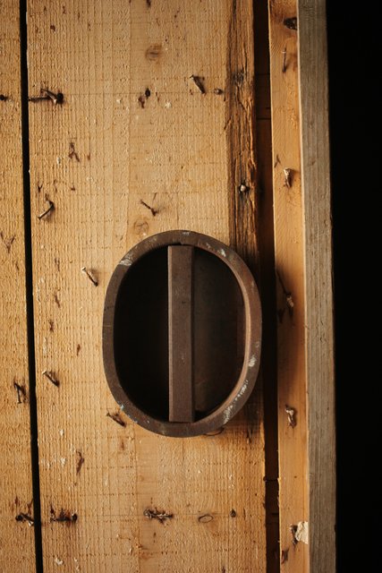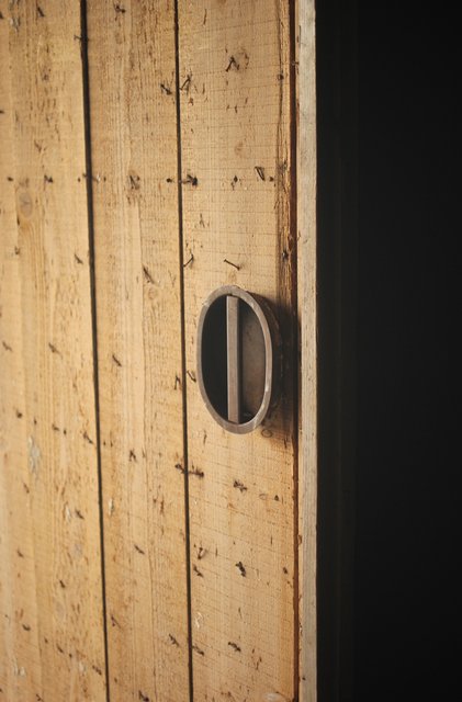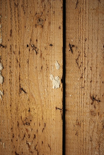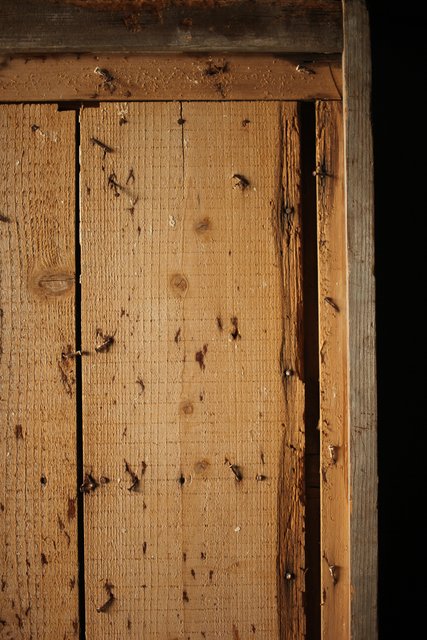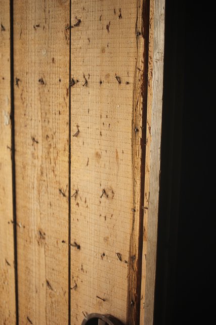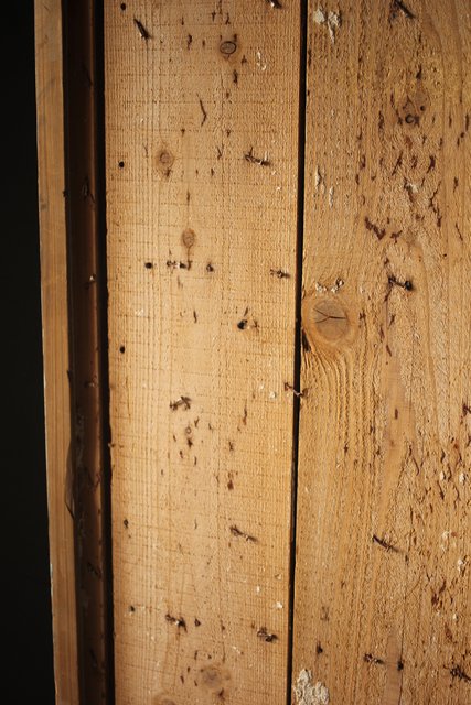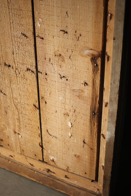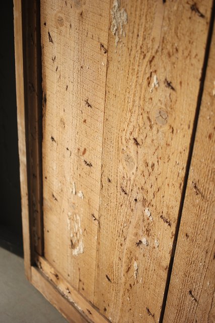 漆喰が取れ 下地が残った蔵戸