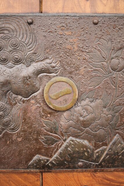 大きな牡丹獅子の印象深い金具です