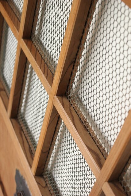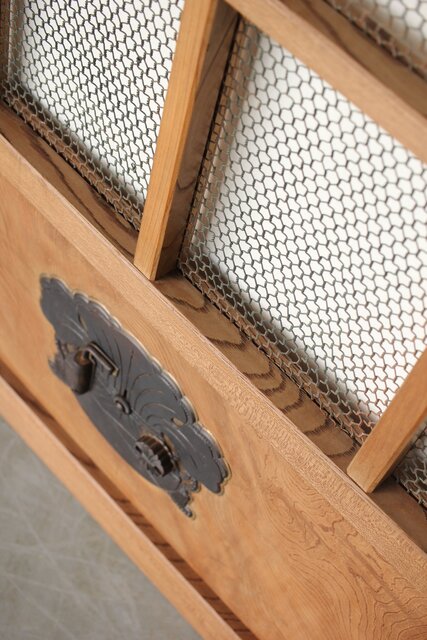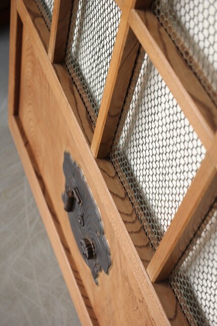 欅の銅金網張 升格子巾着金具蔵戸 W069YD