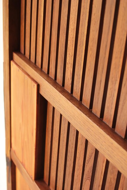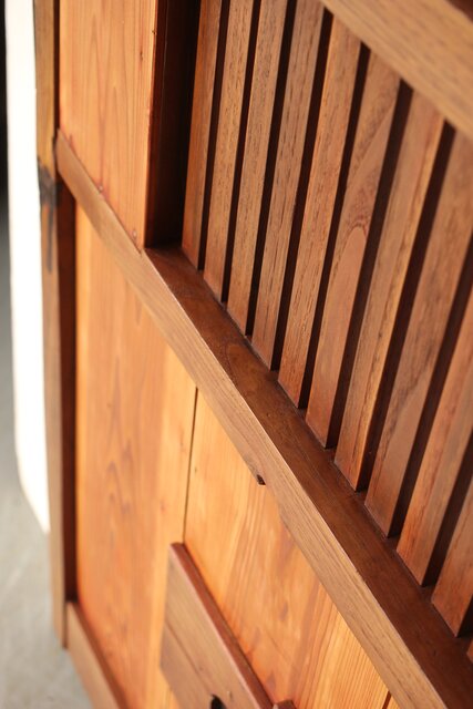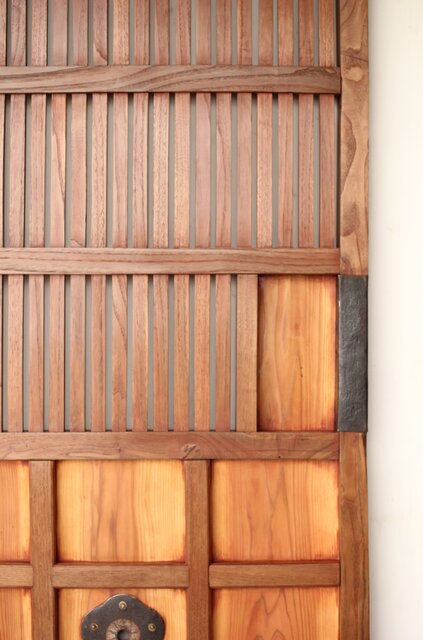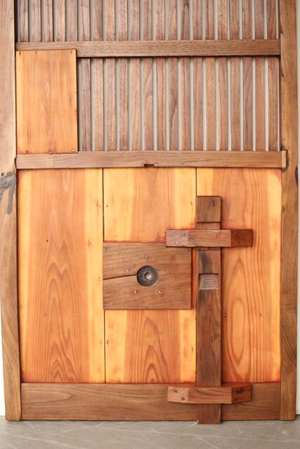 細身格子蔵戸 W090 栗でしょうか 良く磨かれ美しい景色