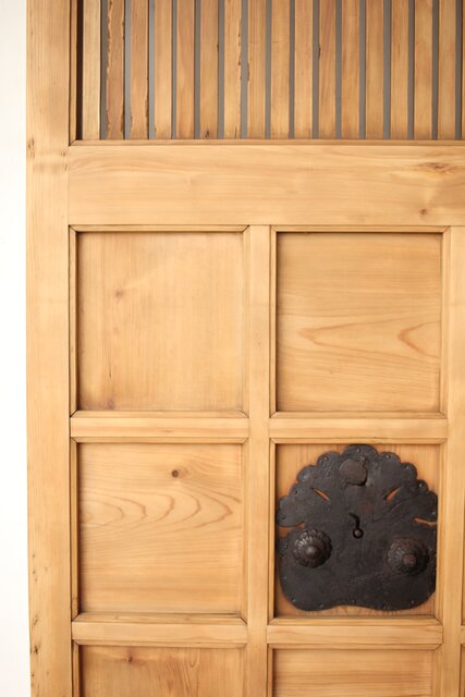 白木格子蔵戸 W108 腰板に金具 ワンアクセントが効いています