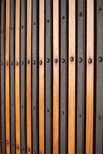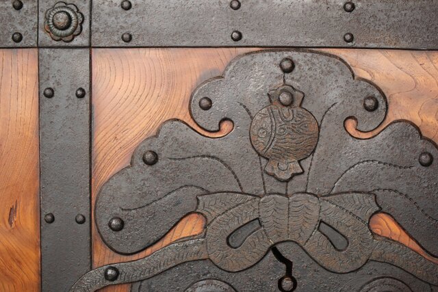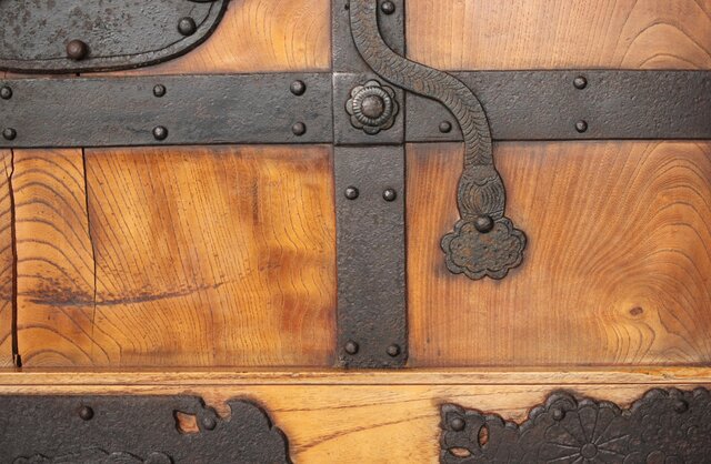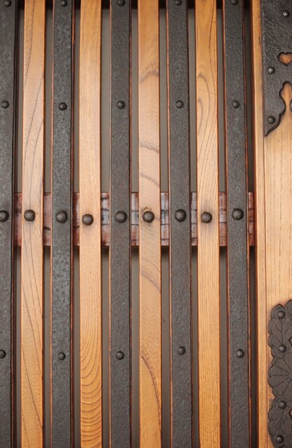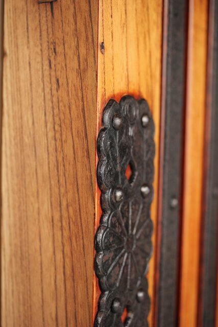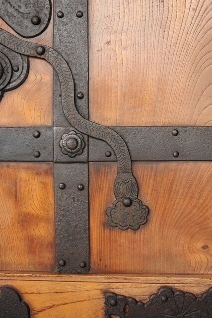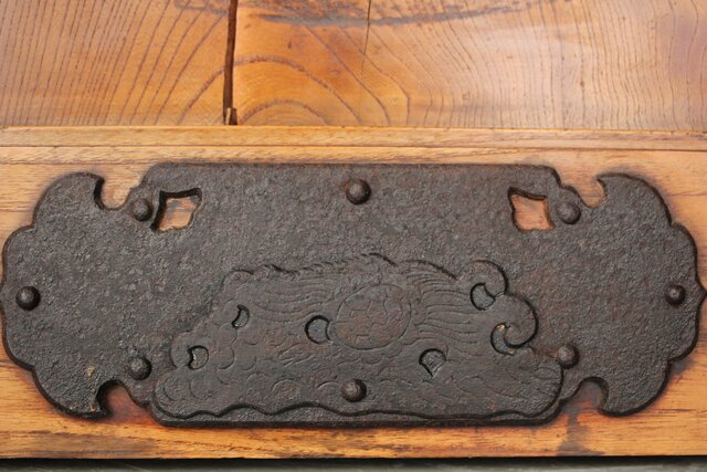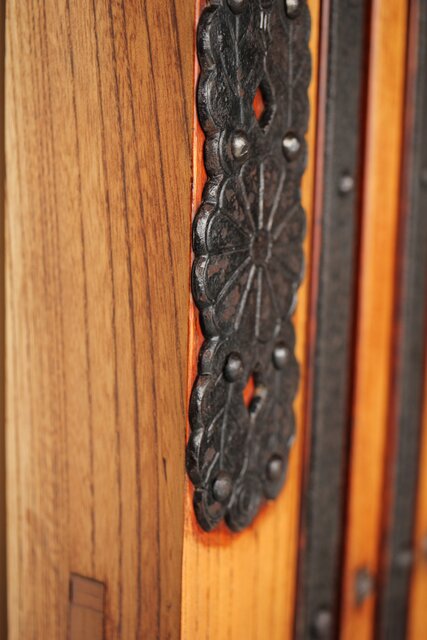 総欅製 前面に施された鉄金具