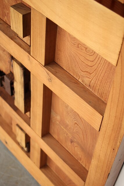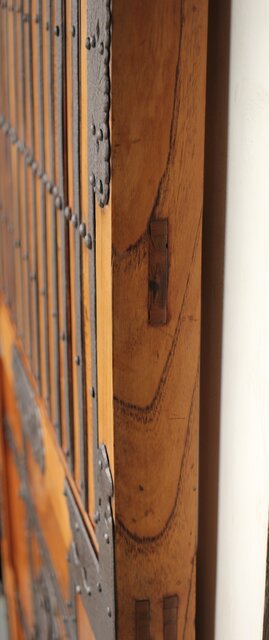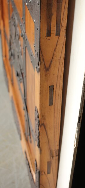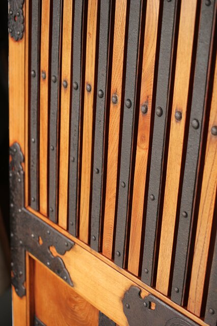 総欅 重金具格子蔵戸 W114Y 横から見てわかるこの厚み
