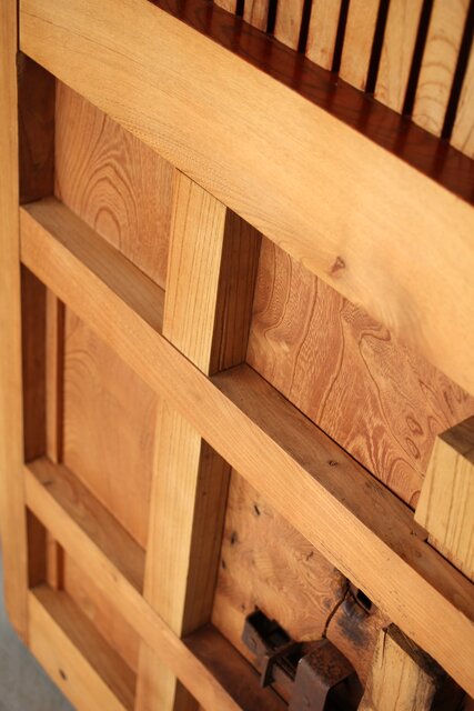 総欅 重金具格子蔵戸 W114Y ウラ面