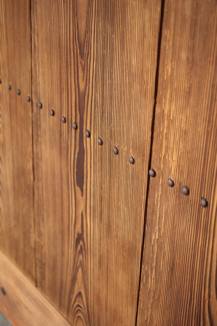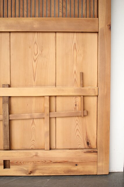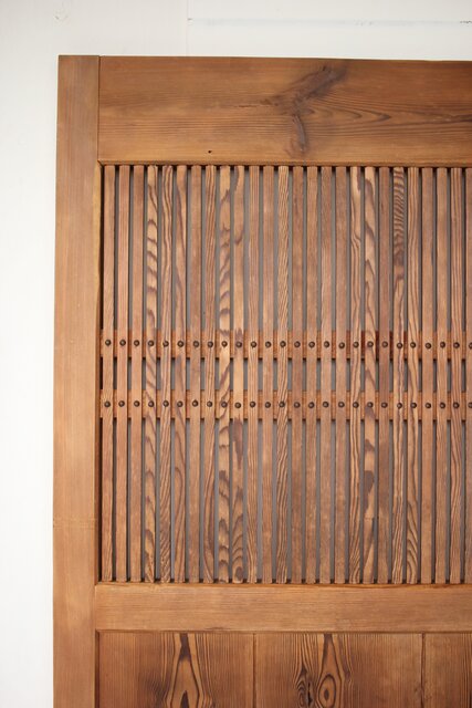 幅広格子蔵戸 W122YD 格子も腰板も うずくりの仕上がり