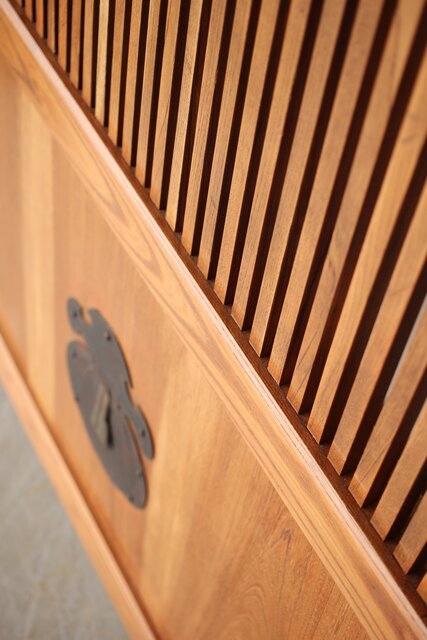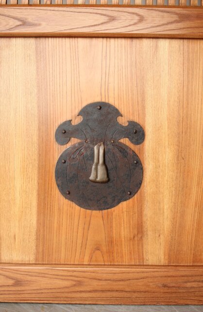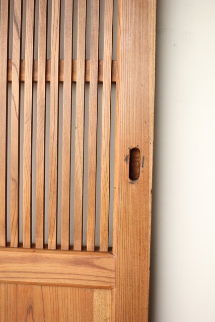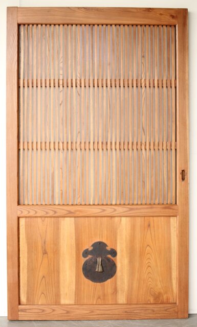 総欅 釘無格子蔵戸 W0135Y 可愛らしい巾着型