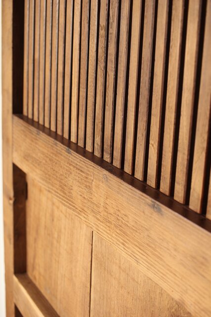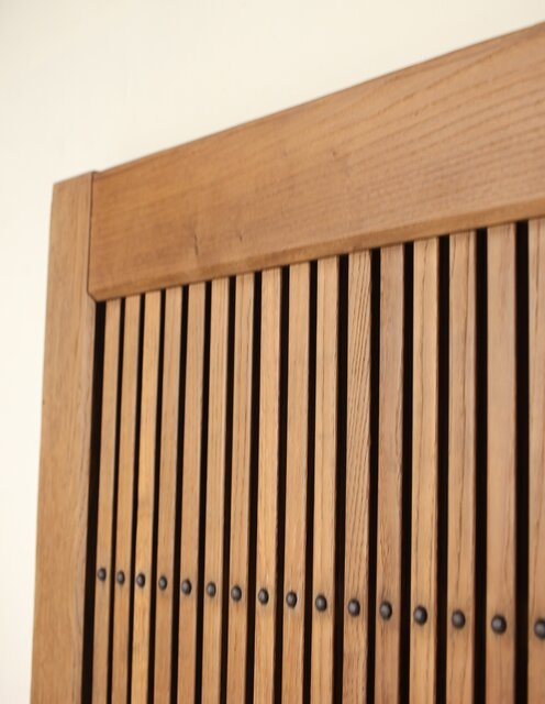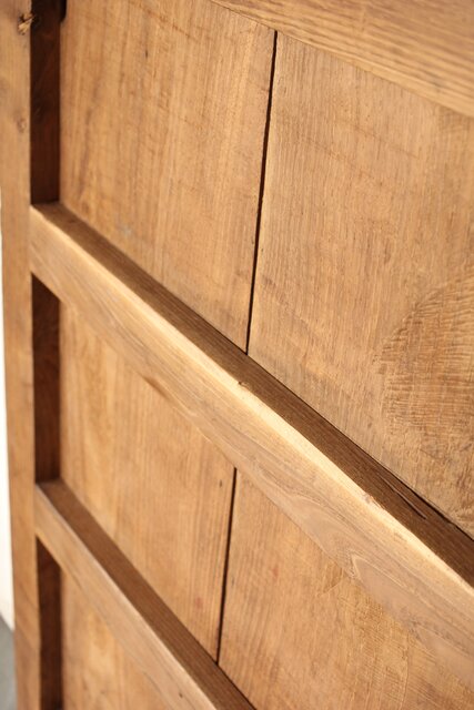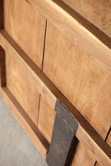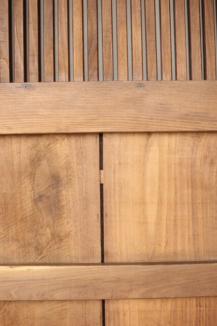 幅広 栗の格子蔵戸 W0145YD 腰板も全て栗材の様子