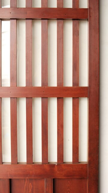 朱の明るい印象の蔵戸