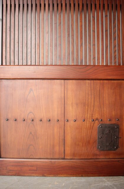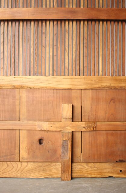 総欅 幅広格子蔵戸 W0204 前後への反りも少し見られます
