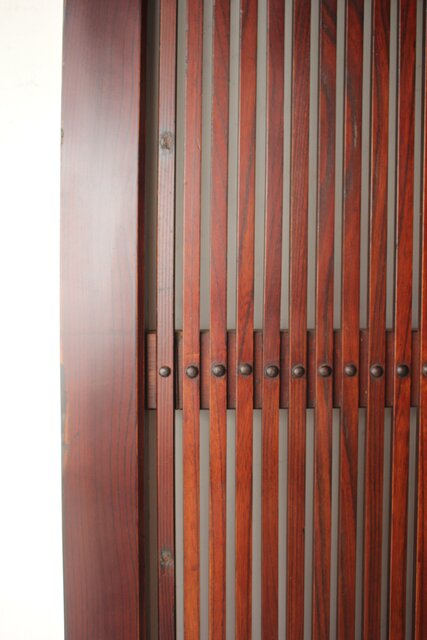 総欅 幅広格子蔵戸 W0204 左右への反り