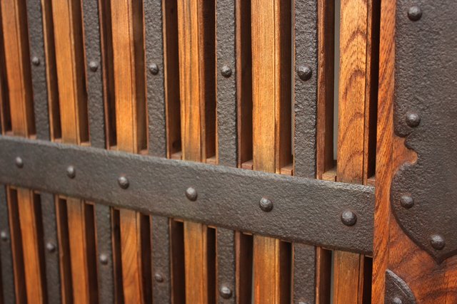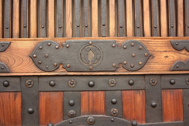 びっしりと張り巡らされた金具も素敵ですが 桜型の鋲もチラホラと見られます