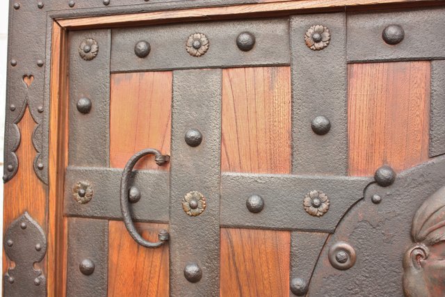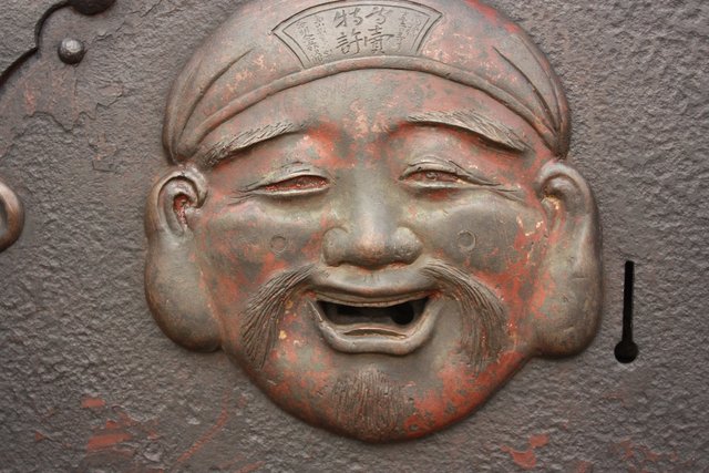 超個性的な大黒さまをかたどった真鍮金具が目を引きます