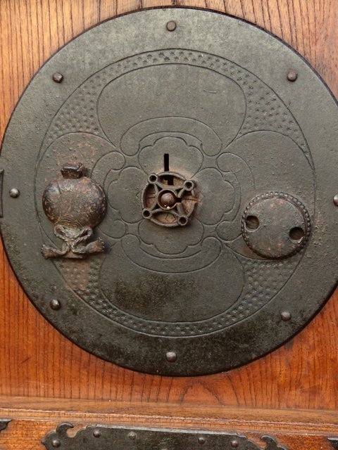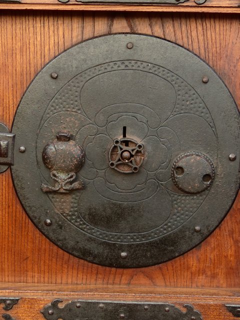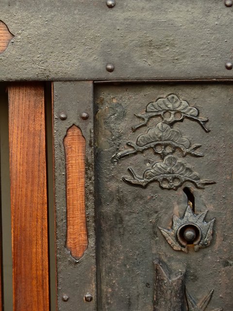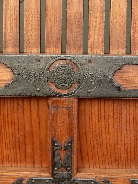 升格子で丁寧に区切られた小部屋一つ一つに作りの細かい金具がびっしり