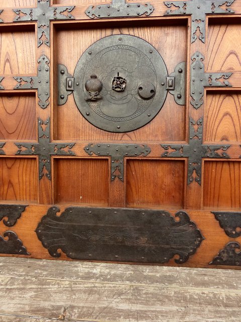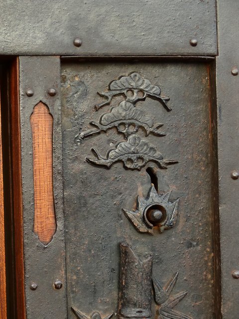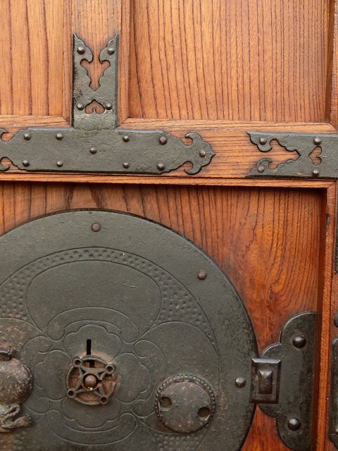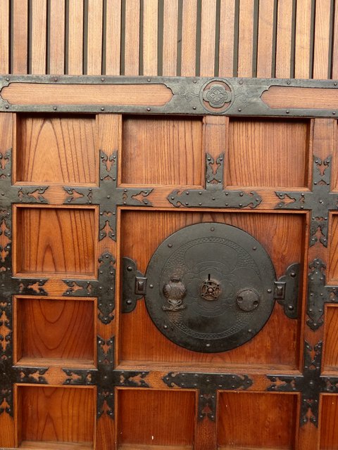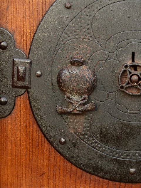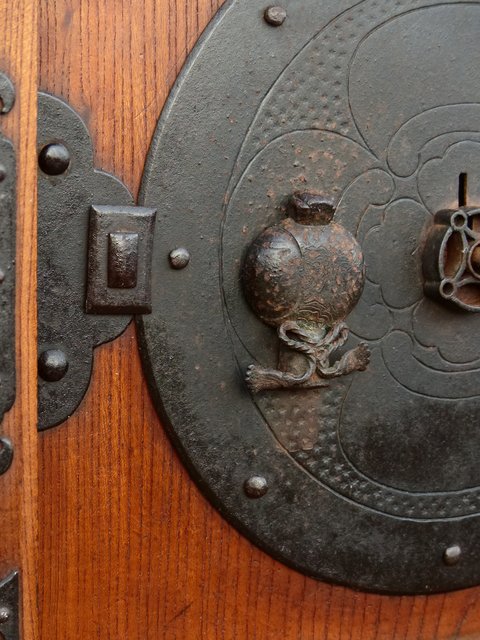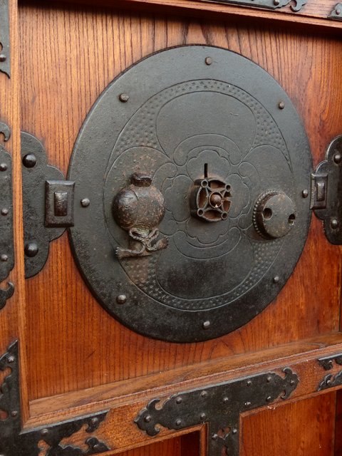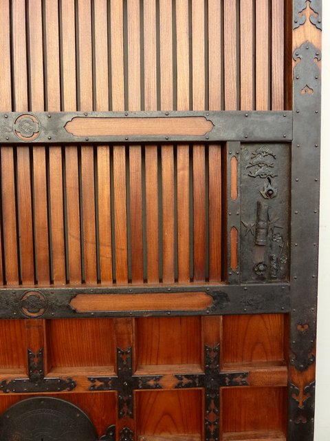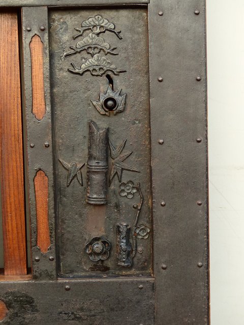 引手部分には松竹梅の金具 腰板には巾着の金具がついています