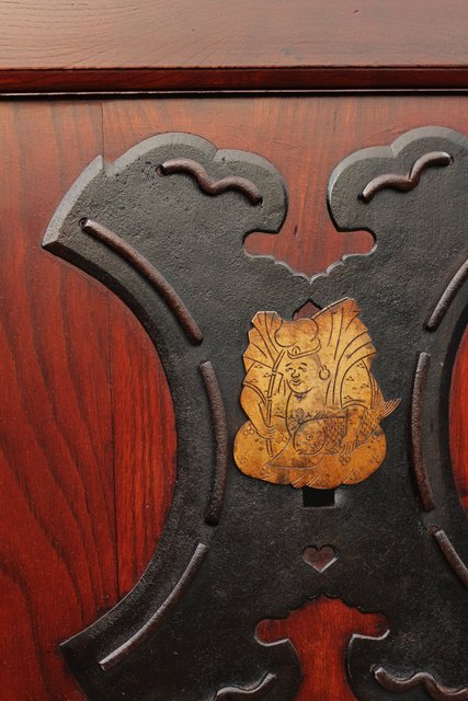 総欅の升格子蔵戸 腰板には恵比寿様の金具付き