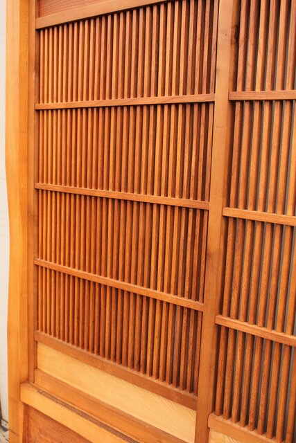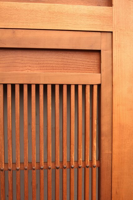 すっきりとっした木地を感じ取れる格子仕様の蔵戸です