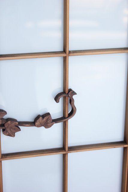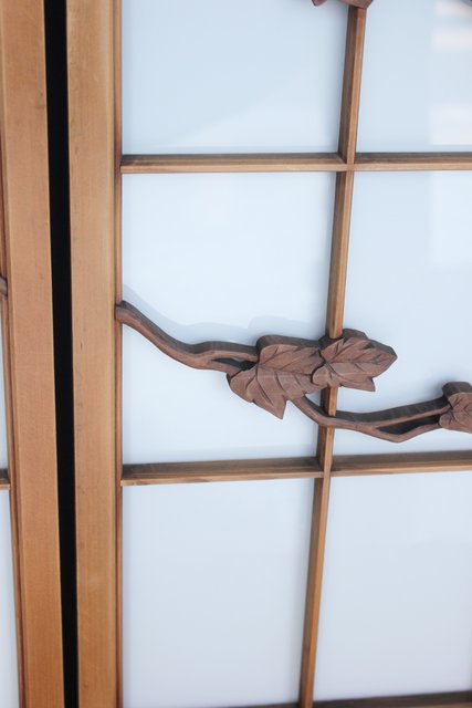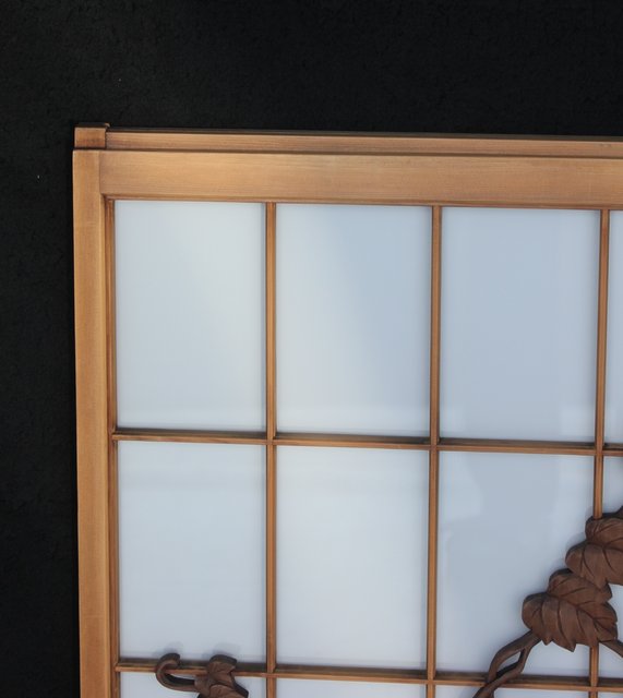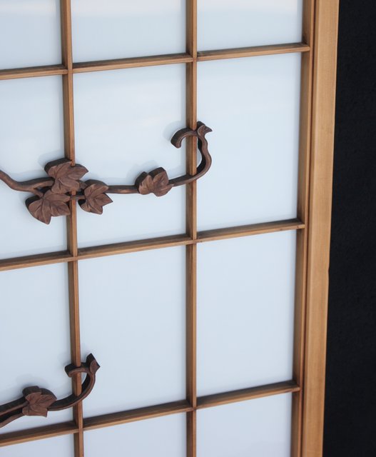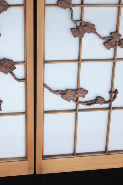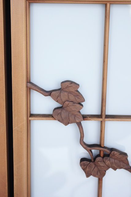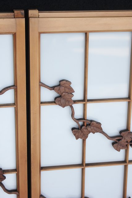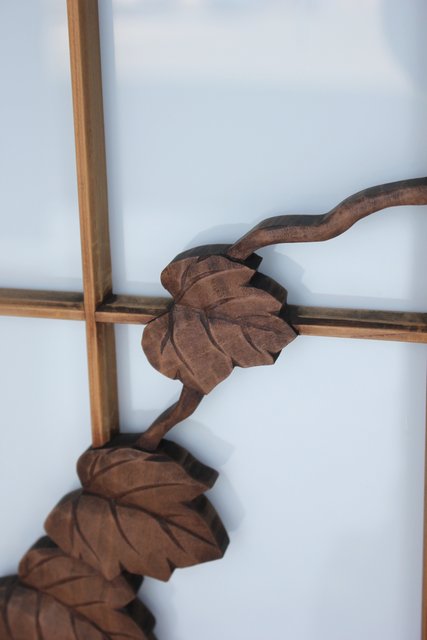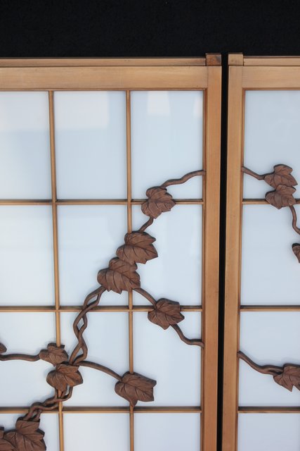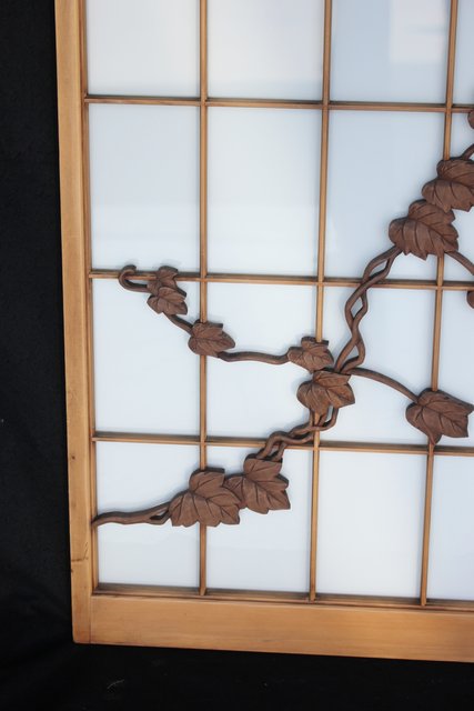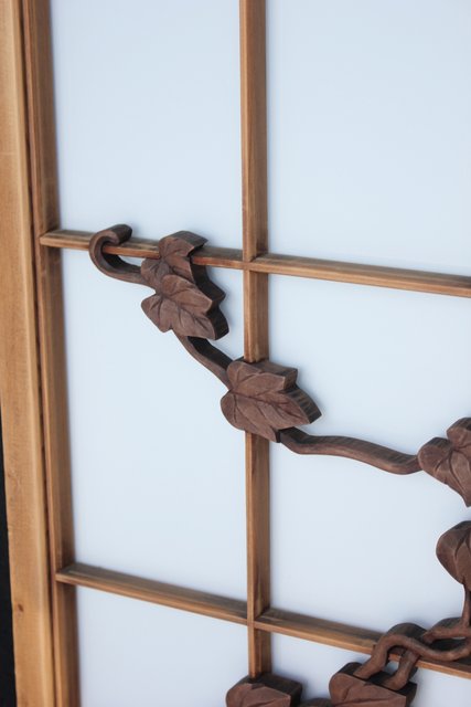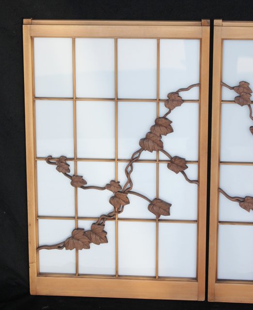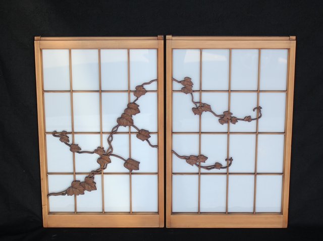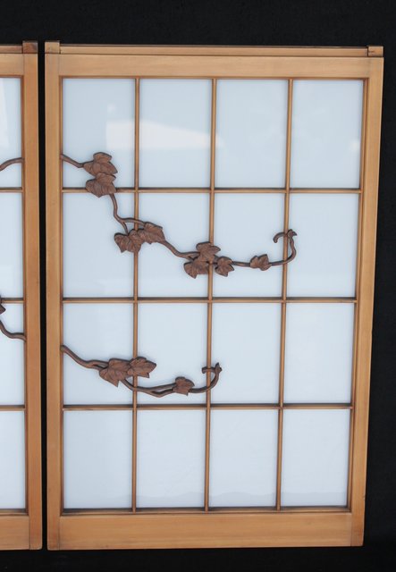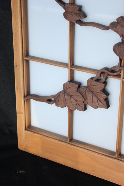 乳白色ガラス 蔦木彫 書院/窓 2枚1組 R2485