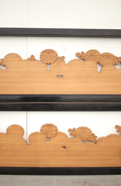 黒枠 菊彫欄間 2枚1組 R0010 A面