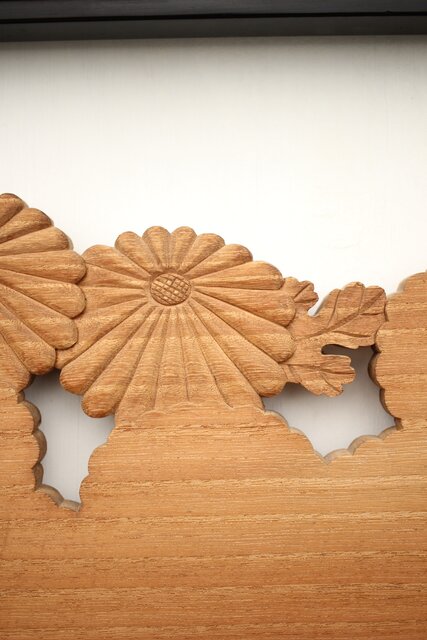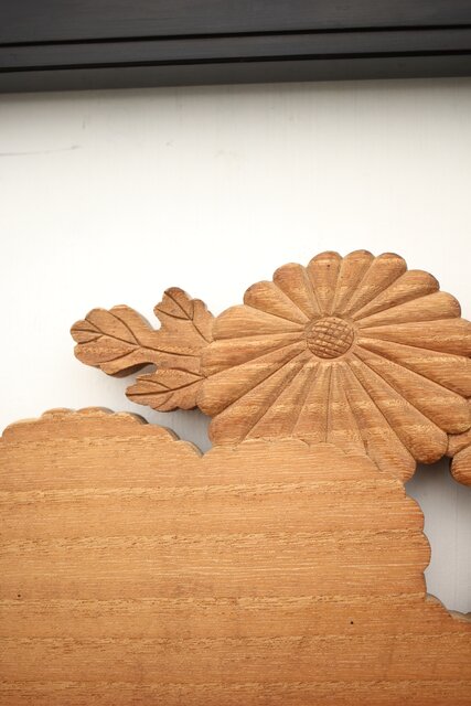 厚い材に菊の模様をセンス良く彫りこんだ欄間
