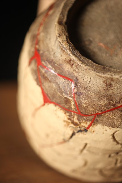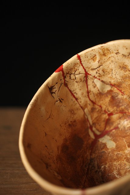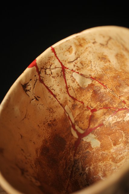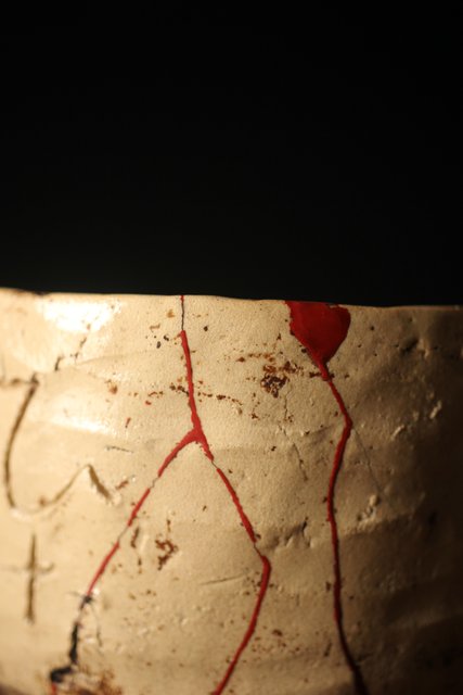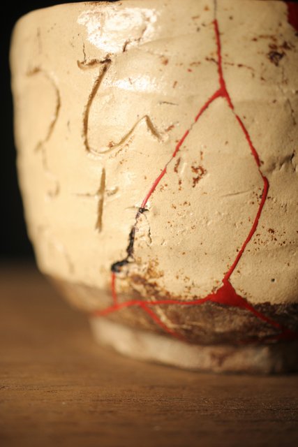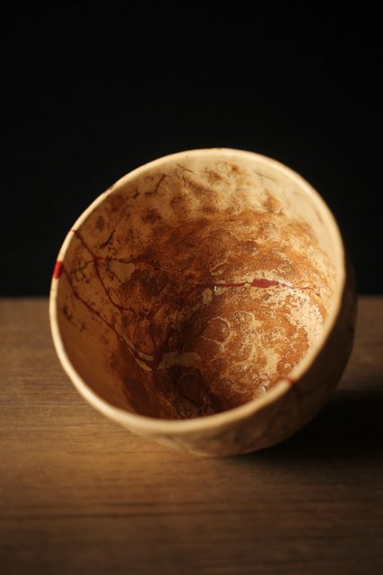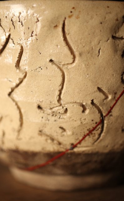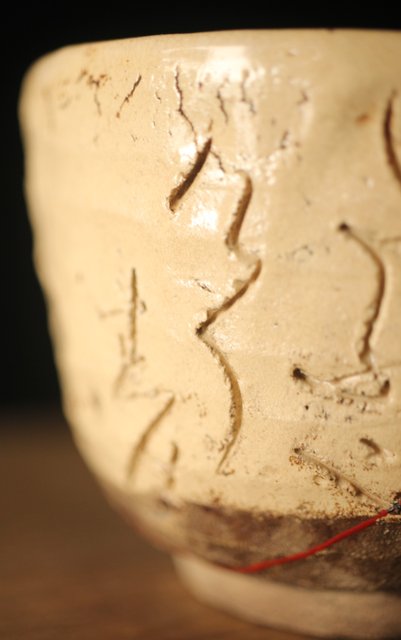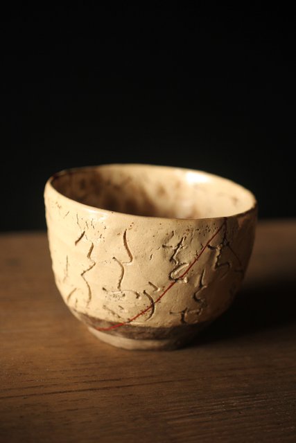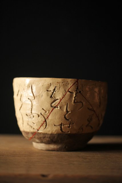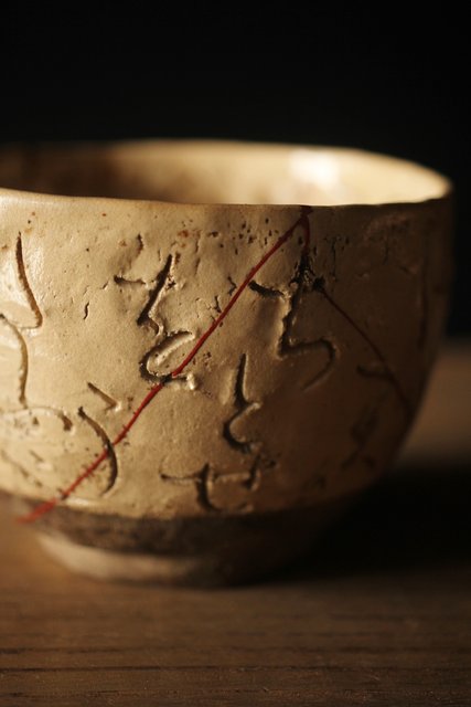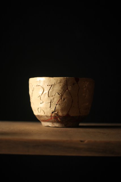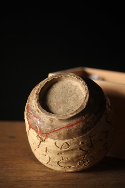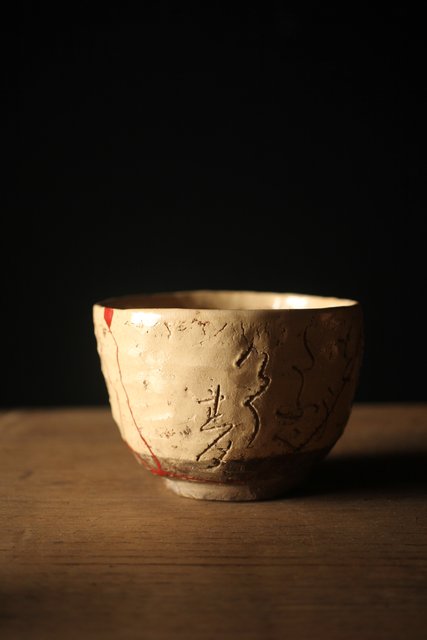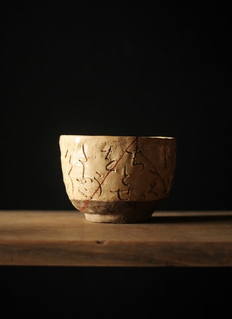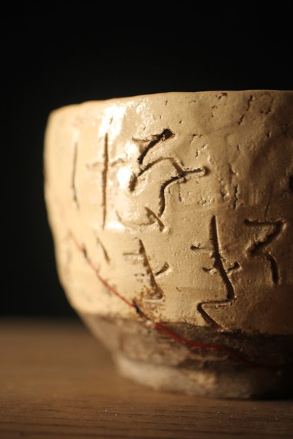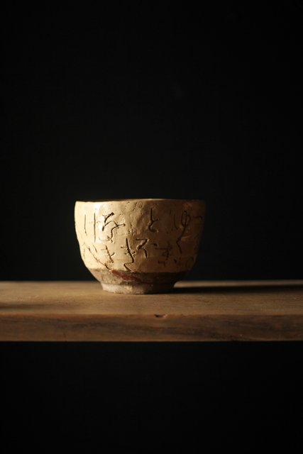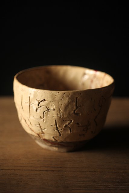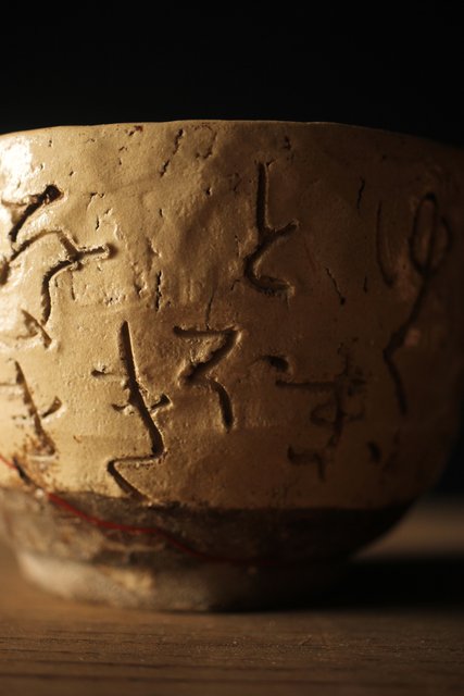 大田垣蓮月の和歌が釘彫された素朴なお茶碗