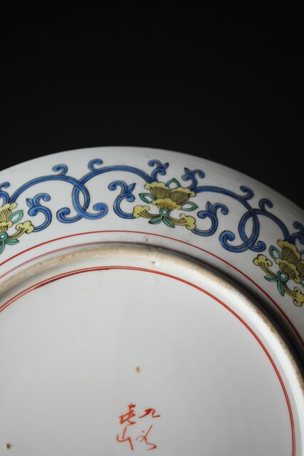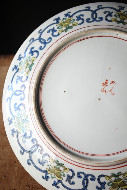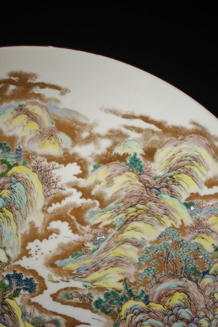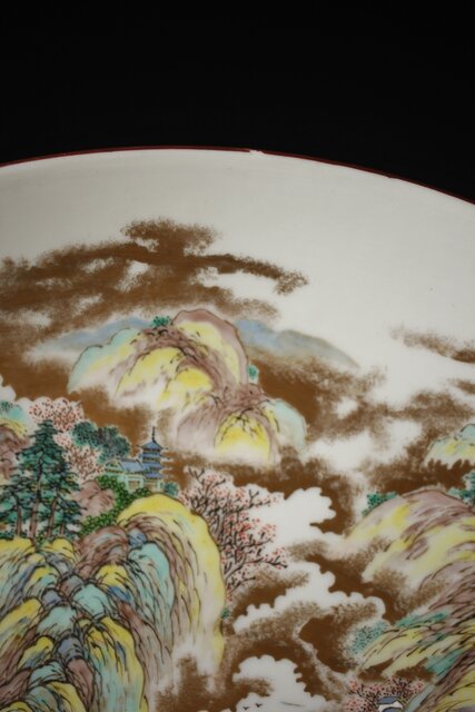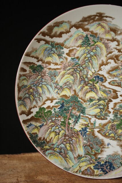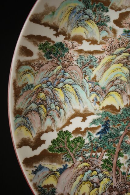 九谷 二代 上出喜山 山水楼閣図 大皿 P259