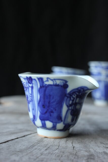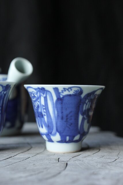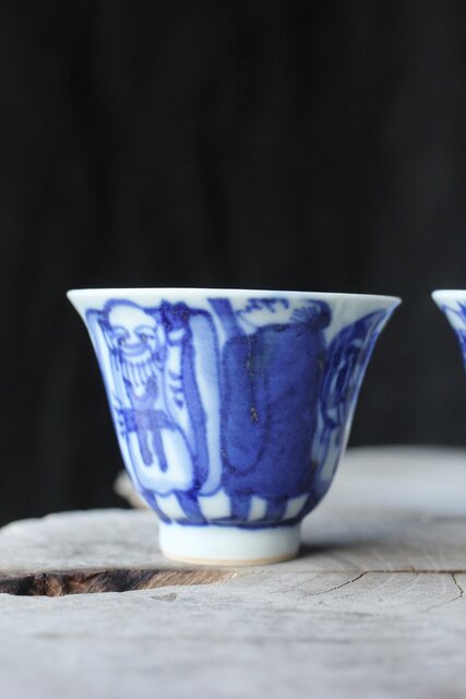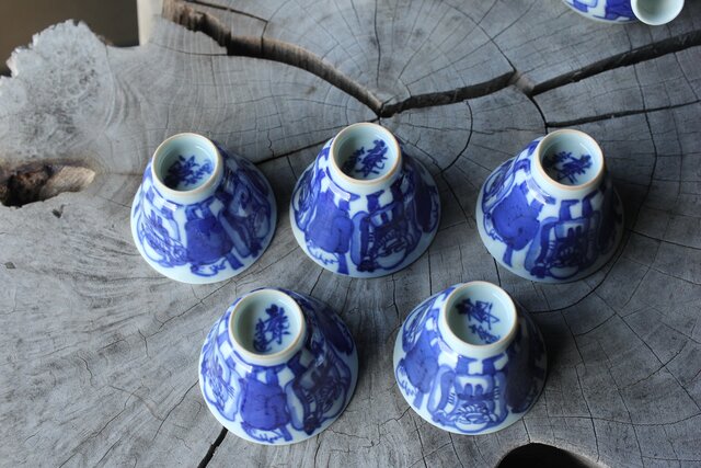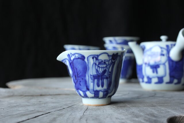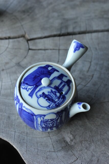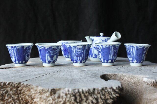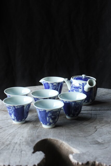 九谷 幡山による青木木米写しの賢人図染付茶器セット